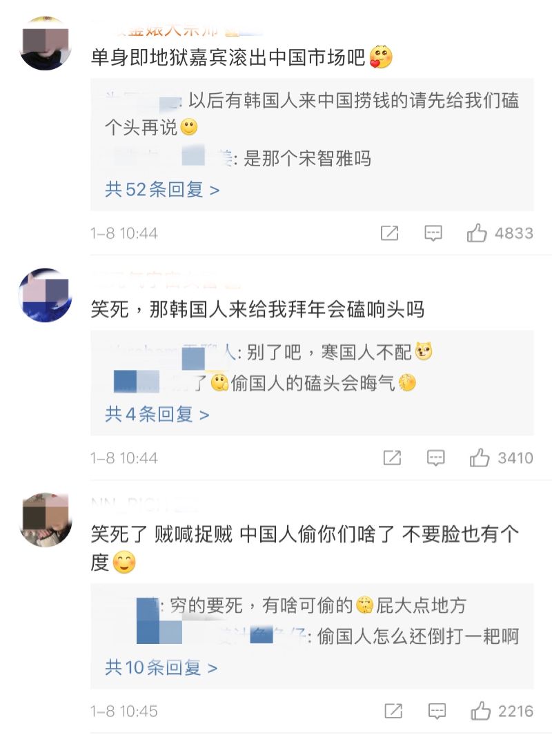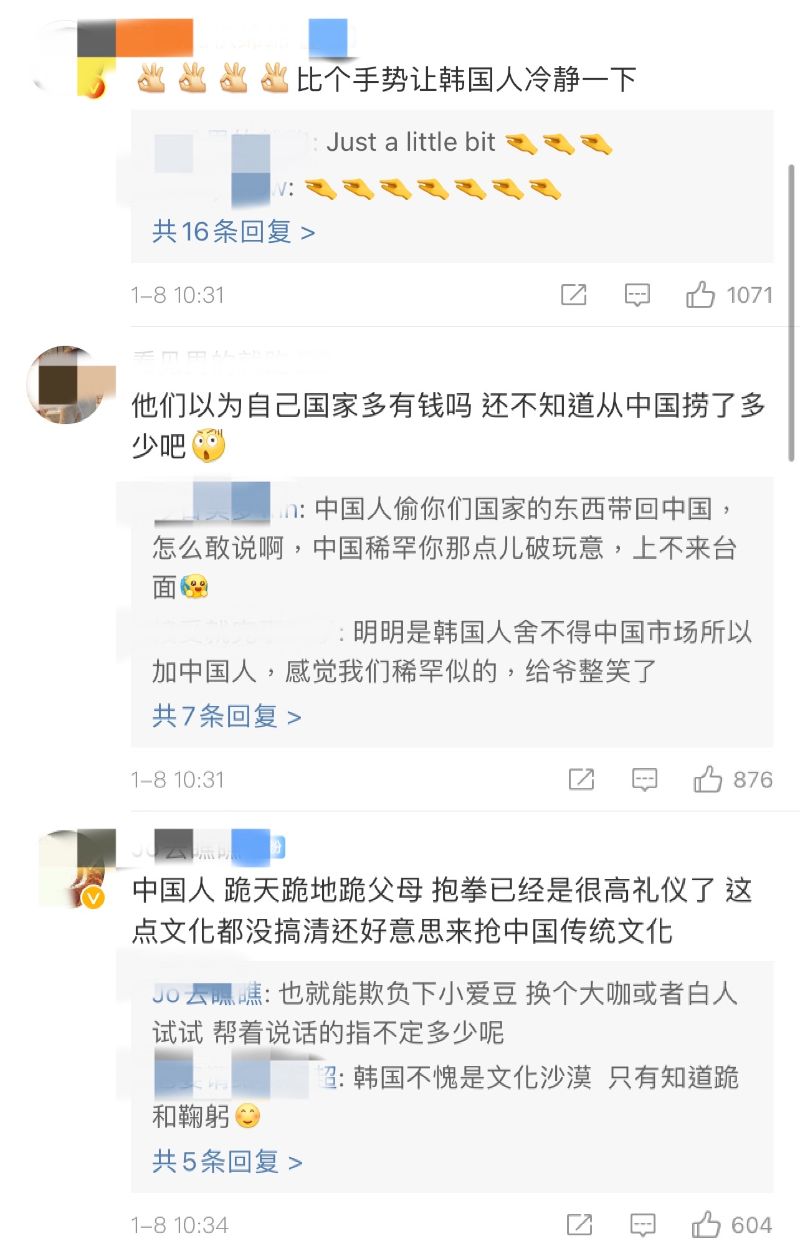 「以後有韓國人來中國撈錢的請先給我們磕個頭再說!」