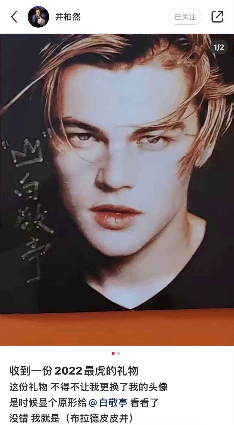 果然,貴公子和懷柔王子之間的相愛相殺,真的能看100年啊!這裡先來案件回顧,也就是小白的2022年第一則微博,獻給了井柏然,因為他收到了井寶快遞過來的驚喜,就是自己的簽名照一張👇