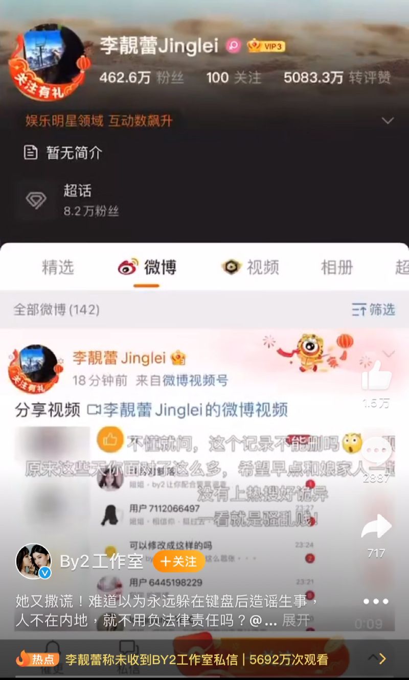 工作室發文表示:「她又撒謊!難道以為永遠躲在鍵盤後造謠生事,人不在內地,就不用負法律責任嗎!」並直接艾特了李靚蕾!