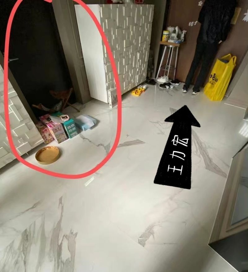隨後粉絲又追加另一個角度的新照片,這次直接看見在白色櫃子旁,的確還有另一道門,而門前擺滿了玩具。這張照片中,王力宏下半身一併入鏡。