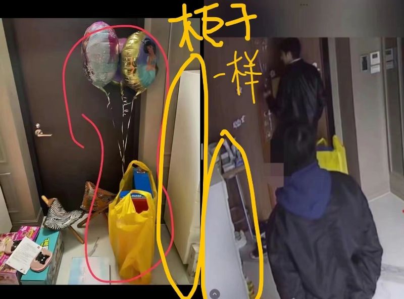 由於有網友質疑不是同一個門,粉絲繼續解釋禮物是放在兩個白色櫃子中間的門。