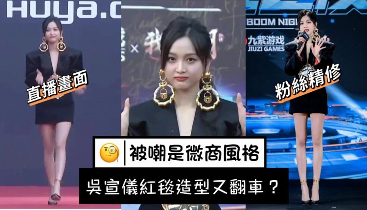 吳宣儀紅毯造型又翻車?高定禮服被嘲像拳手!直播截圖vs精修圖差好大!