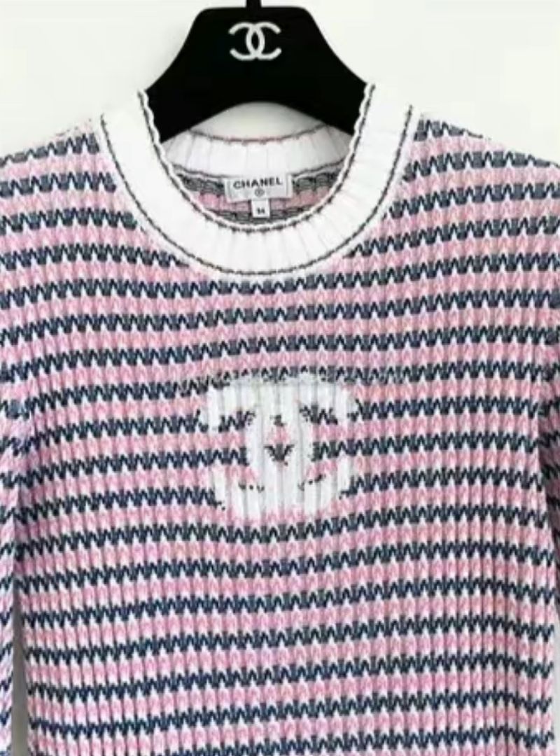 網友也指出她穿的香奈兒毛織上衣,logo大小和厚度和正品同樣存有不相似之處。