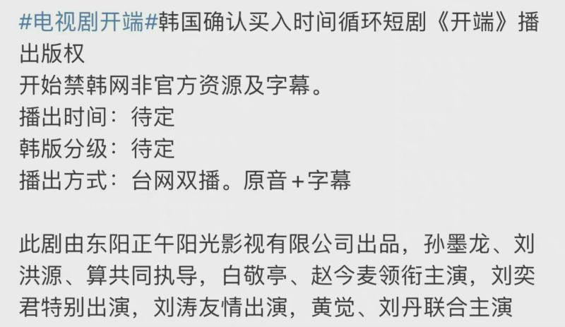雖然才播出第一個星期,但好消息是,韓國方面已經確認購入《開端》播放版權,看來很快就要在韓國引爆另一波陸劇關注度啊!