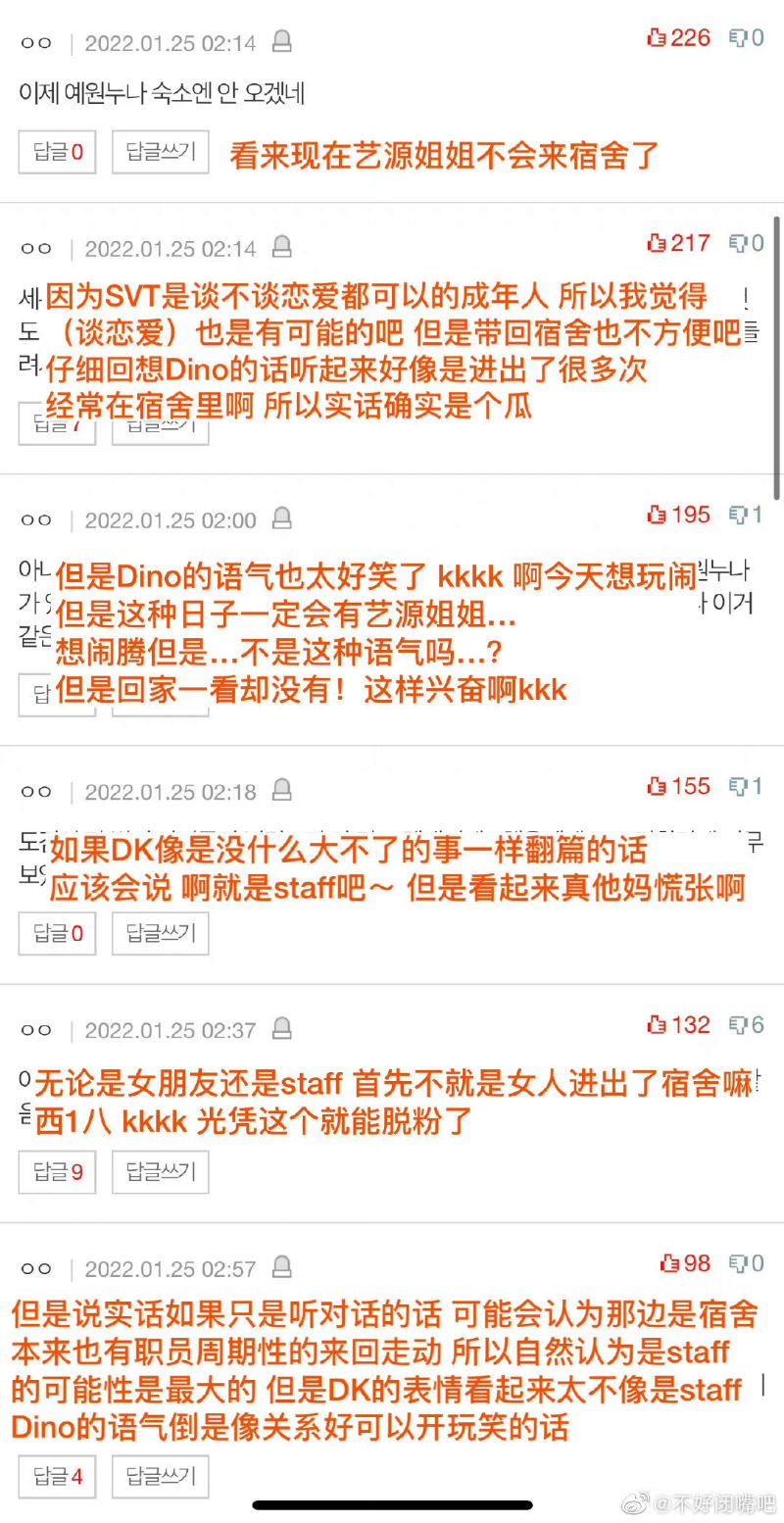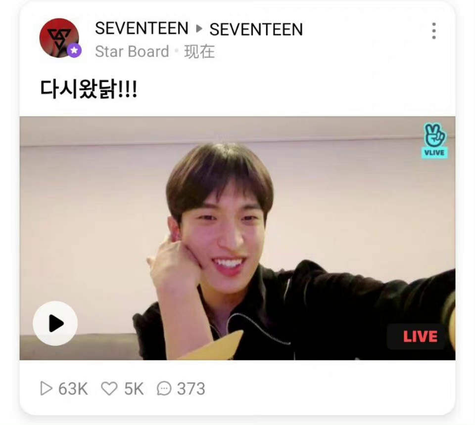 隨後緊急恢復冷靜的Dk,立刻對成員們示意自己在做直播,Dino聽見之後表示:「原來如此。」而另一個成員Vernon則出現在鏡頭前,並拿走了DK正在吃的炸雞塊。隨後DK火速下播,整個過程不足40秒,而重播視頻也沒有上傳。