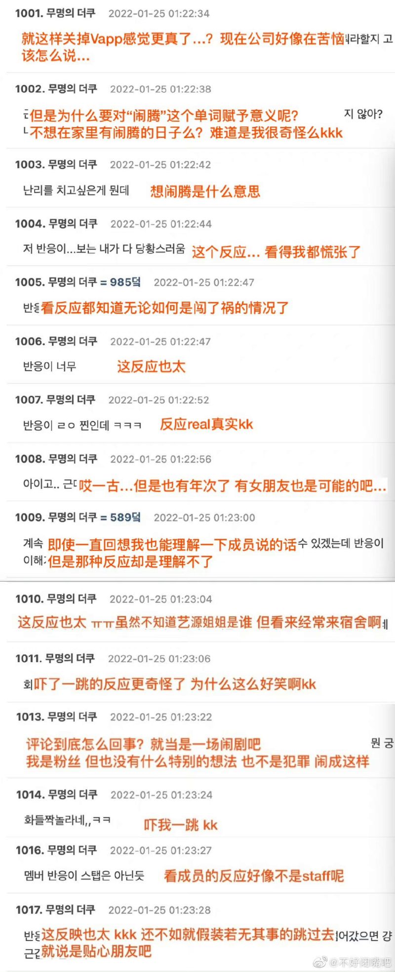 隨後緊急恢復冷靜的Dk,立刻對成員們示意自己在做直播,Dino聽見之後表示:「原來如此。」而另一個成員Vernon則出現在鏡頭前,並拿走了DK正在吃的炸雞塊。隨後DK火速下播,整個過程不足40秒,而重播視頻也沒有上傳。