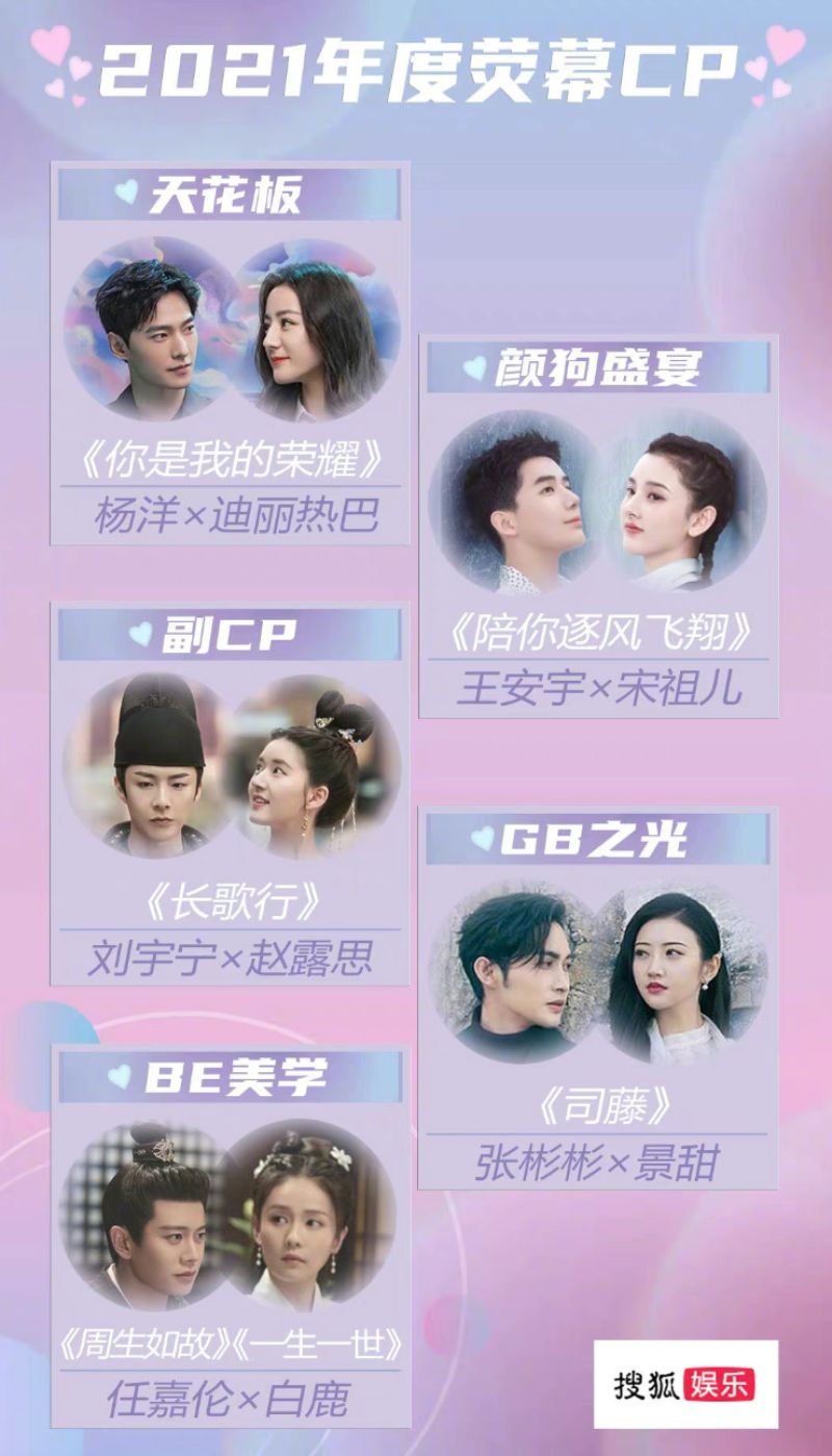 來來來,來看投票唄!是噠,由搜狐娛樂舉辦的「2021年度熒幕情侶」票選活動成績出來啦!這次活動基本上包括了網友+媒體兩方面投票,這就來看看究竟2021年,真正最出圈的熒幕情侶是誰呢?這5對熒幕情侶速速看起!