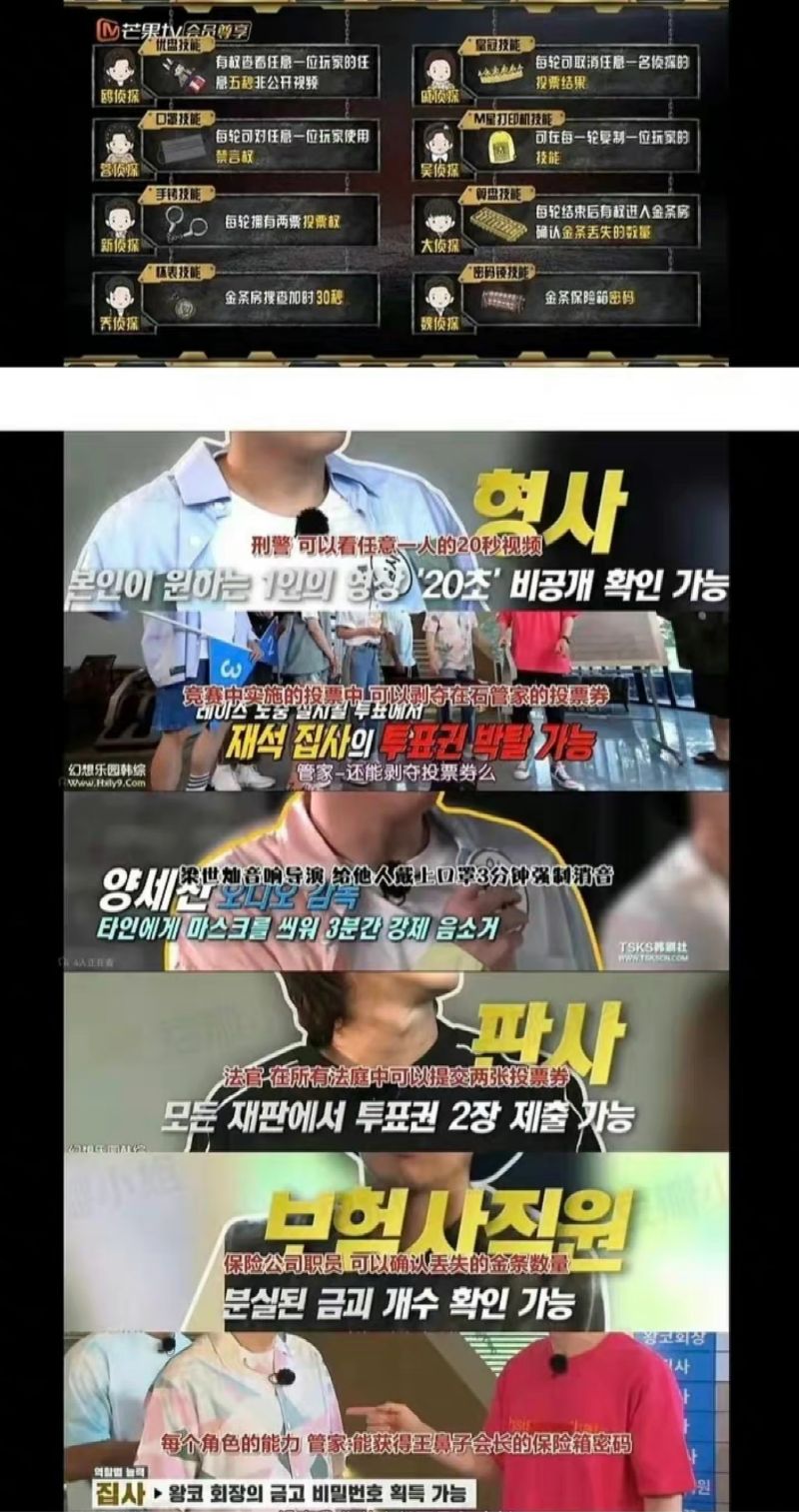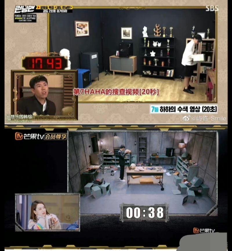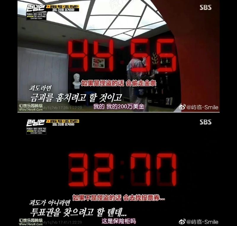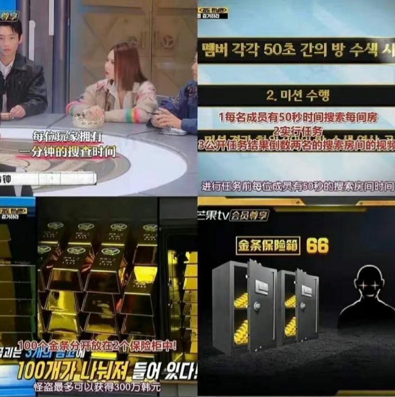 再來看看遊戲規則,都提到了成員有限定的搜查時間,RM內是50秒,而大偵探則是一分鐘。而兩個綜藝裡,都設置了兩個保險櫃藏金條。