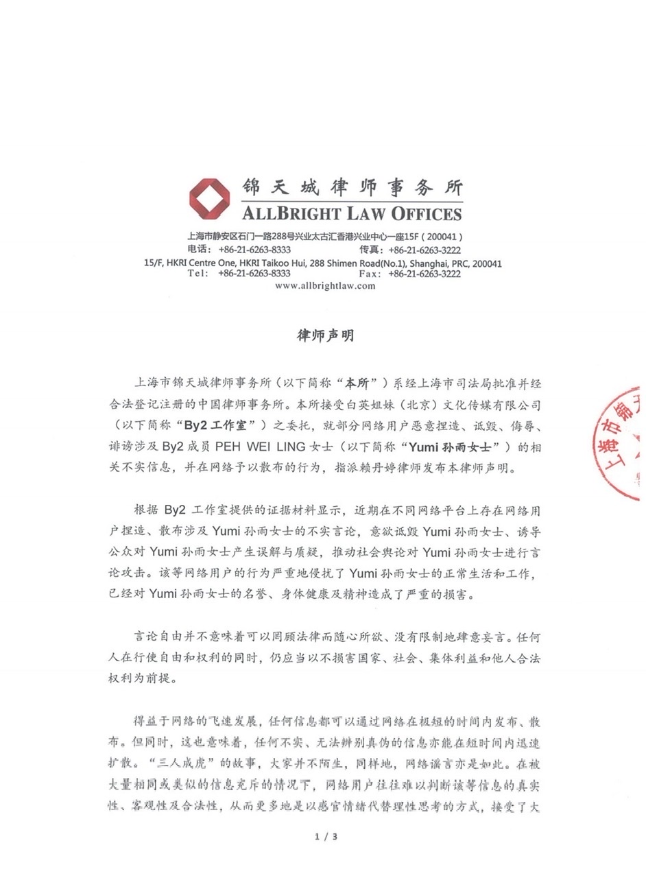 接下來我們或許還要經歷大家難以想像的阻礙。 但我們還是相信公義,選擇把一切交給司法,等待公平處置,清者自清! @李靚蕾Jinglei 法庭見。」