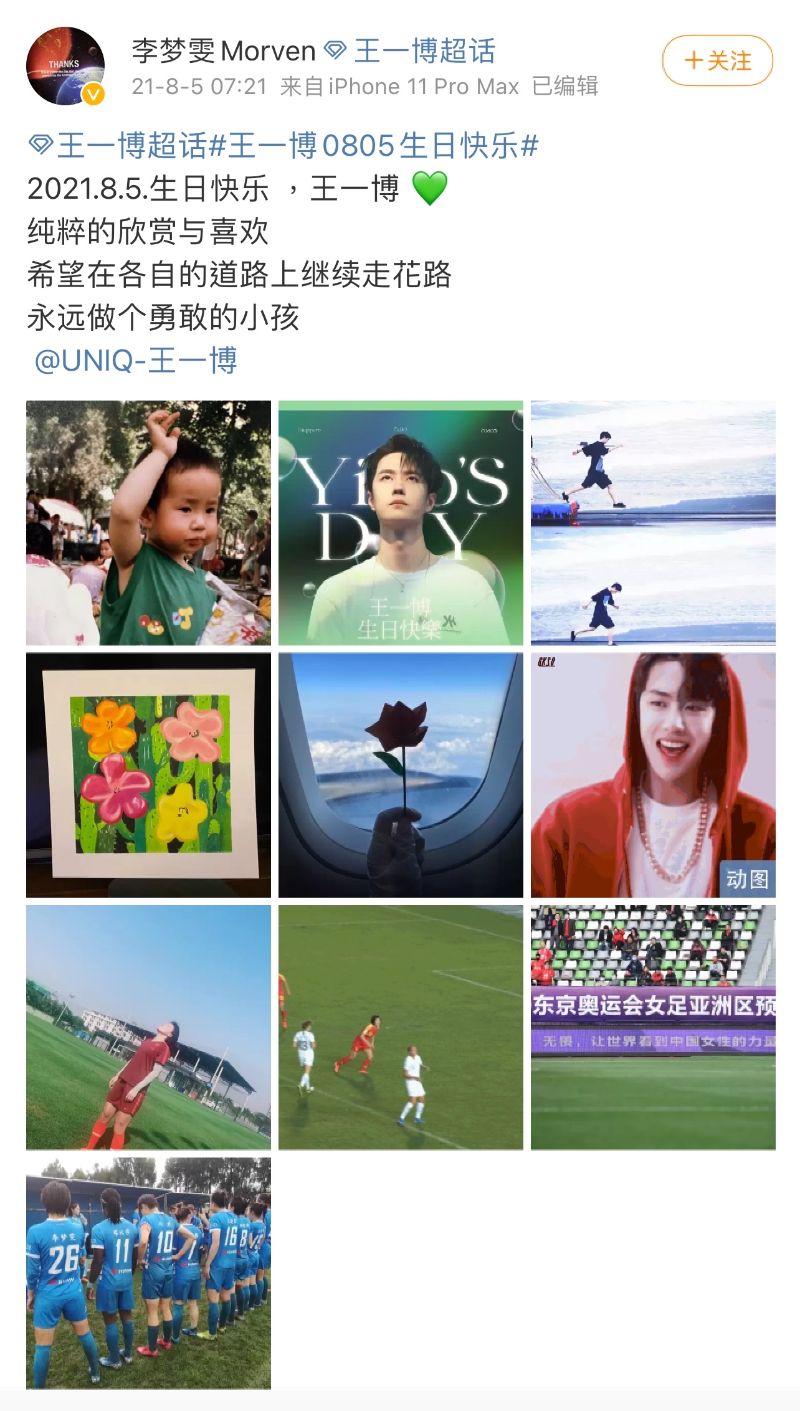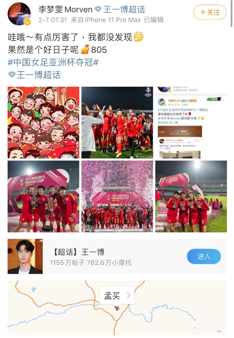 原來女足奪冠這一天,正好也是身為王一博死忠粉的她,在王一博超話簽到的第805天,而“805”這個數字,也和王一博的生日數字一致!