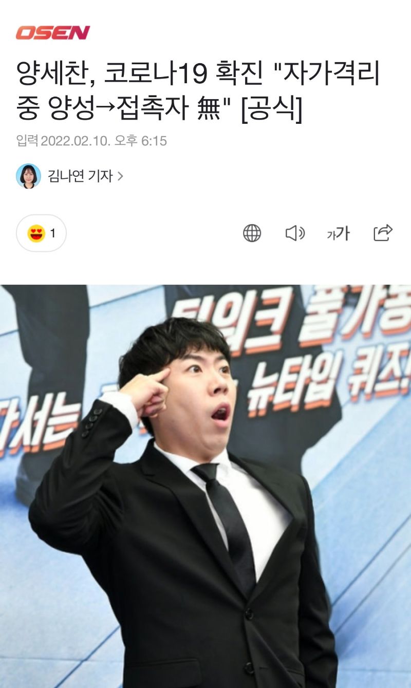 但隨後同是RM家族成員的梁世燦,其經紀公司發聲明表示:「梁世燦在PCR檢查中被判定為陽性。」梁世燦這幾天因為一起錄製《Talk派員25時》的全炫茂在5號確診,被判定為密切接觸者後,處於隔離狀態,所以並沒有參與7號的RM錄製。
