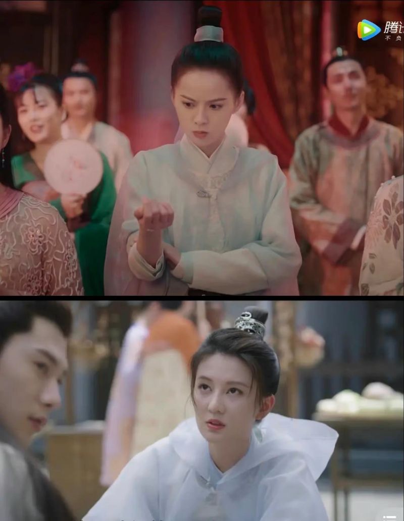 隨後就被扒出劇中不少演員的戲服,似乎都和2019年播出的《惹不起的殿下大人》服裝相同,尤其是女主喬欣的造型,更是和《惹不起》的黃日瑩一模一樣!這就來看看喬欣《嫣語賦》和黃日瑩《惹不起的殿下大人》撞衣對比圖👇
