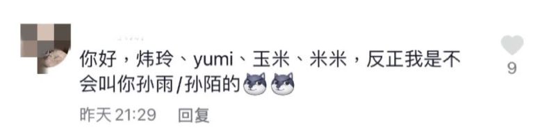 「你好,緯玲、yumi、玉米、米米,反正我是不會叫你孫雨/孫陌的」