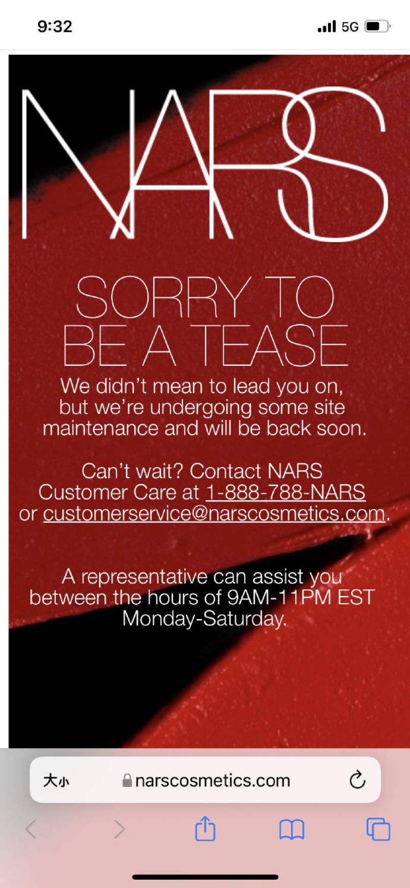 就連美國和加拿大的NARS官網,也因為瀏覽人數過多而崩了👇