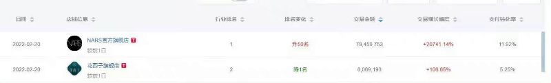 在中國方面,官宣當天NARS的官v漲粉21萬,店鋪漲粉17萬,僅天貓平台成交額就79459753元,成交額近 8000萬,交易增長幅度20741.14%!!!