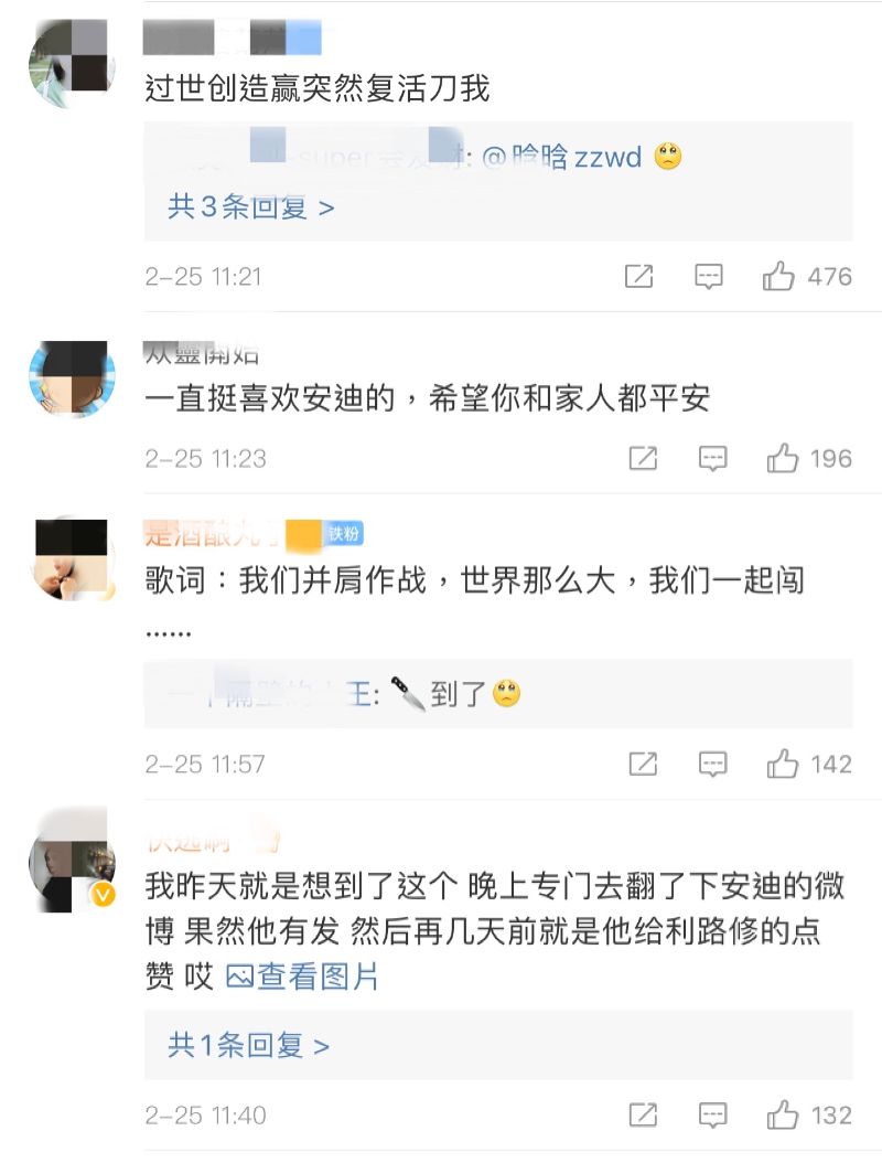 「一直挺喜歡安迪的,希望你和家人都平安!」