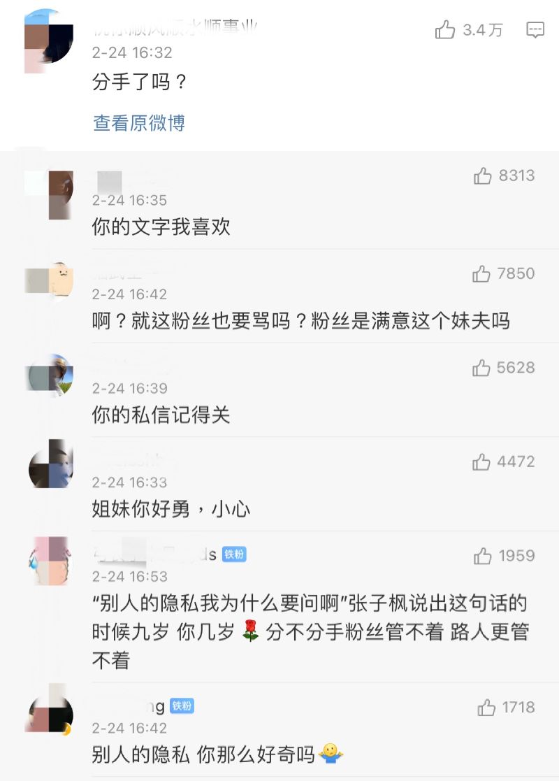 「“別人的隱私我為什麼要問啊”張子楓說出這句話的時候九歲,你幾歲?分不分手粉絲管不著,路人更管不著!」