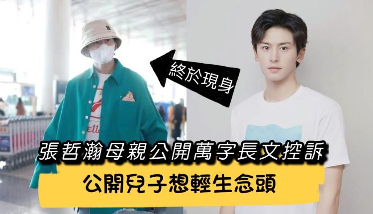 張哲瀚時隔半年久違現身!母親公開萬字長文控訴「兒子被有預謀性網暴」!透露兒子曾有輕生念頭!