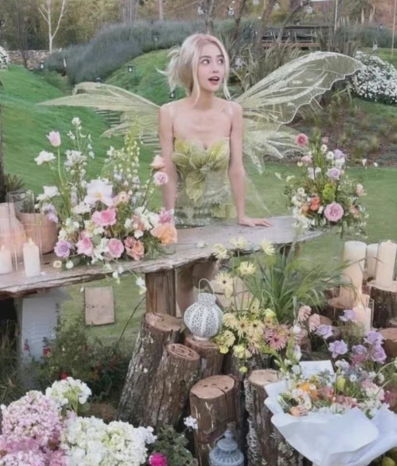 還在戶外舉辦了慶生會,其中一個造型居然是金髮精靈啊!!在好友公開的照片中,只見Baby變身森林精靈,背後還有一對翅膀呢!就連蛋糕也很配合田野風,一整個主體性超強,完全就是綠野仙蹤小精靈啊!
