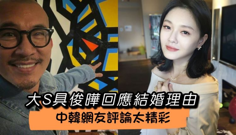 具俊曄接受韓國媒體採訪時透露,自己和大S因為疫情關係沒辦法見面,所以自己先鼓起勇氣提出結婚,而大S也很爽快說好!他表示:「我們已經非常了解對方,不需要再花時間交往,因此不久前決定結婚,也完成了結婚登記。」兩人在韓國的確已經在政府機關登記結婚,全部由具俊曄負責申請。
