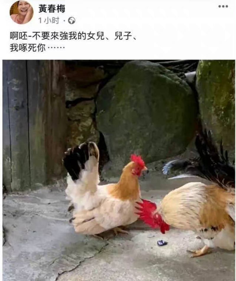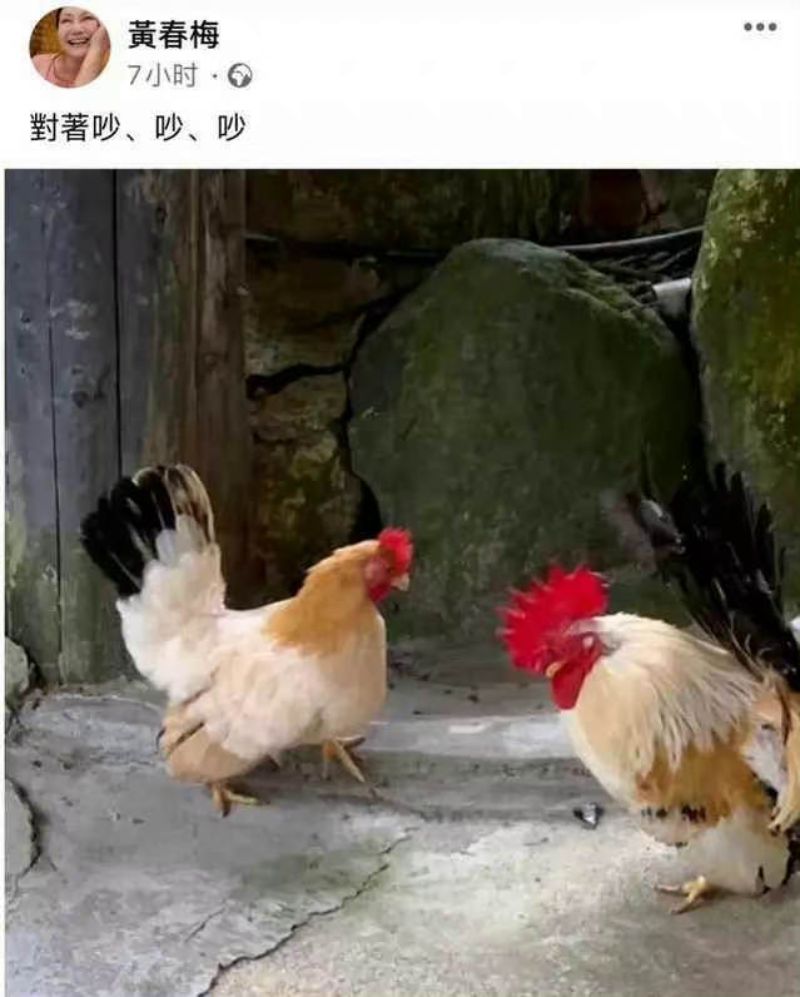 在她的臉書,更是連貼兩則貼文,都用了公雞和母雞當配圖,第一則表示:「對著吵、吵、吵」