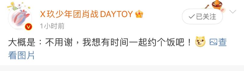 而肖戰12g上線衝浪,立刻代表顧醫生翻譯來啦:「大概是:不用謝,我想有時間一起約個飯吧!」