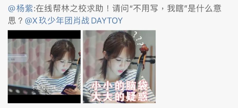 這不,隨著劇集播畢,楊紫立刻上線公開求助:「在線幫林之校求助!請問“不用寫,我瞎”是什麼意思?」並艾特了肖戰!