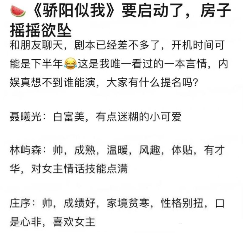 於是所以,看完了所有顧漫作品的影視化男主,你覺得《驕陽似我》應該找誰來演?來看網友熱評👇