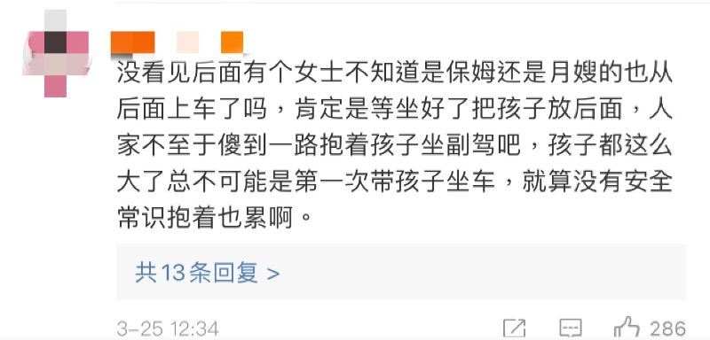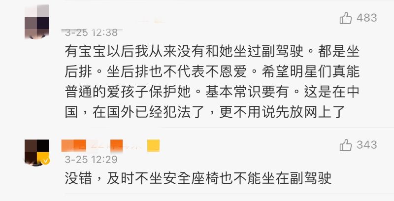「有寶寶以後我從來沒有和她坐過副駕駛,都是坐後排。坐後排也不代表不恩愛,希望明星們真能(以)普通的愛孩子保護她。基本常識要有,這是在中國,在國外已經犯法了,更不用說先放網上了。」