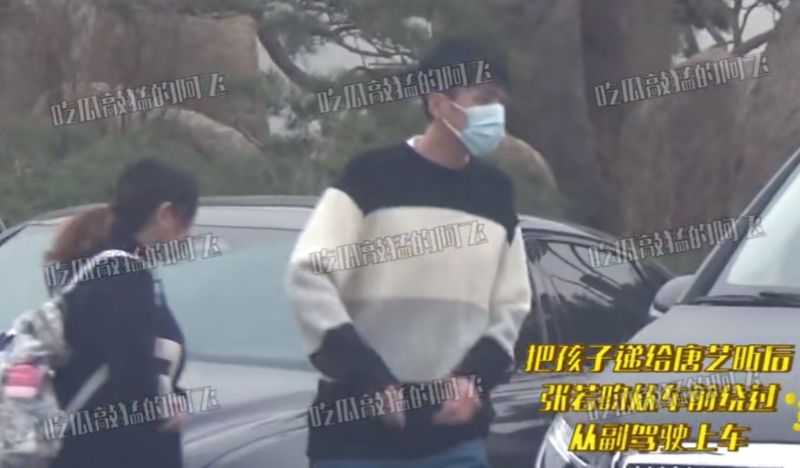 隨後一行人來到自己的車子前,唐藝昕率先坐上副駕駛座後,張若昀將女兒交給唐藝昕。
