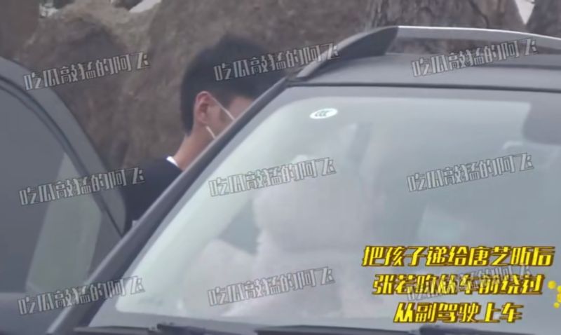 隨後一行人來到自己的車子前,唐藝昕率先坐上副駕駛座後,張若昀將女兒交給唐藝昕。