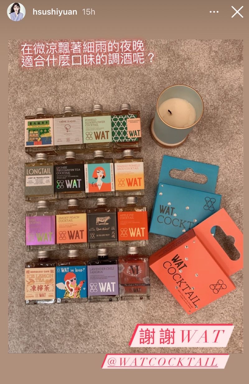 大S首度更新社交網站,上傳了動態故事,曬出了自己代言的雞尾酒禮物。