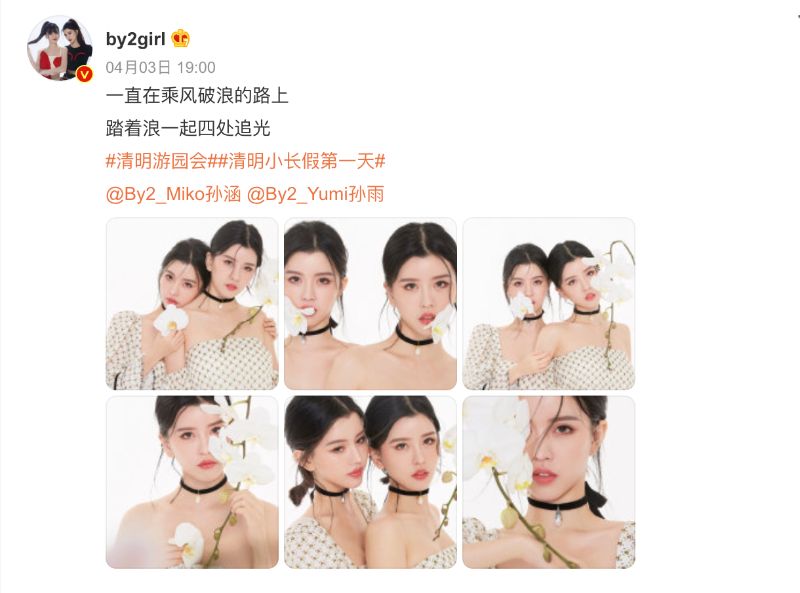 而相信大家也留意到,名單中出現了By2的姐姐孫涵,根據網友爆料,By2只有一個參加,結果是沒有緋聞的姐姐。而By2官微近日也引用“乘風破浪”為文案,被指半官宣👇