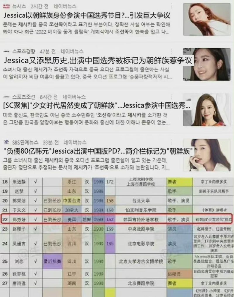 但由於在網絡公開的名單上,鄭秀妍被報導是以“朝鮮族”參賽,結果在韓國被罵上了好幾個熱搜👇
