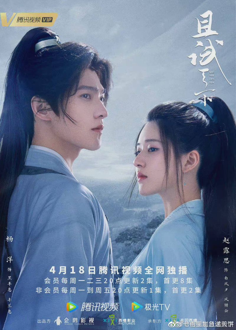 沒錯,黑豐息(楊洋)與白風夕(趙露思)的《且試天下》定檔4月18日,在騰訊視頻全網獨播,會員每周一二三晚上8點更新2集,首更8集!!!!至於非會員則是每周一到周五晚上8點更新1集,首更2集!