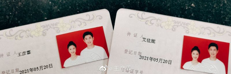 是噠,王彥霖和艾佳妮是大學同學,兩人是在21年5月20日官宣註冊👇