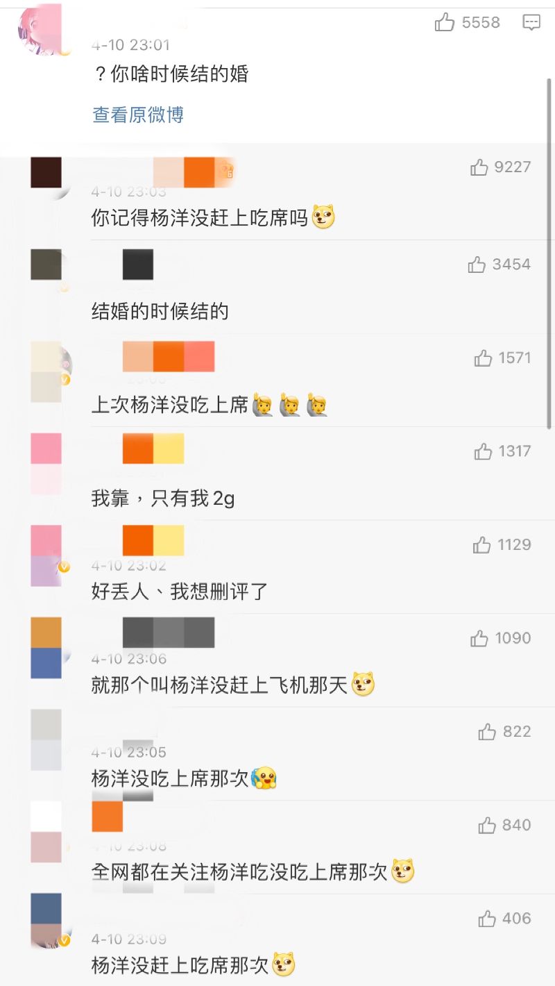 而在王彥霖貼文下,熱評第一的網友好社死,因為她留言:「?你啥時候結的婚」,結果網友紛紛在線cue楊洋,表示: