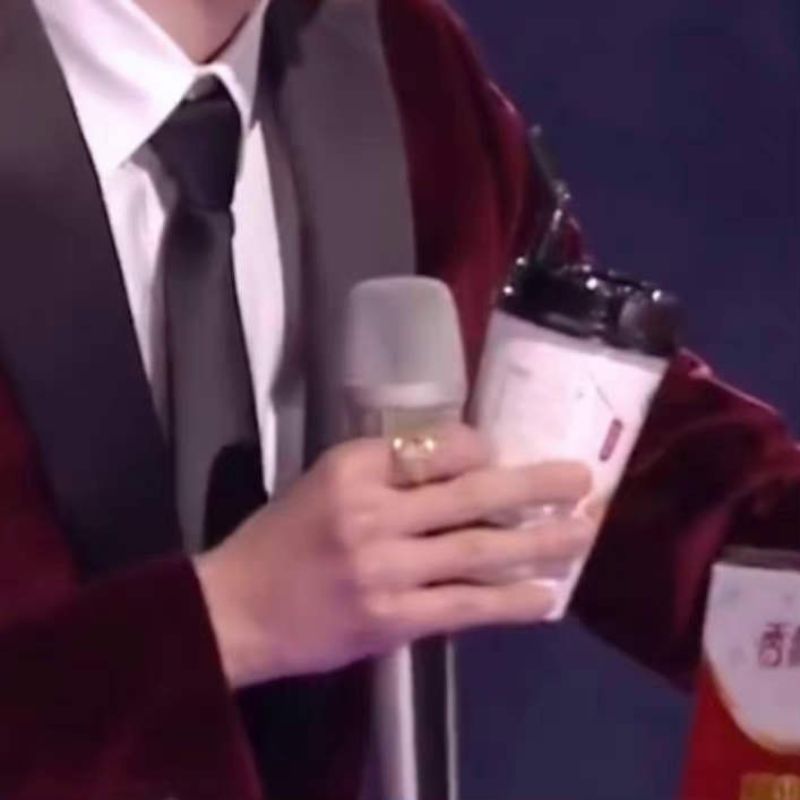甚至手大到可以同時拿麥克風和大杯奶茶杯👇