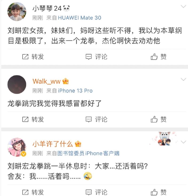 原本以為《本草綱目》已經是極限的網友,都被劉畊宏的《龍拳》搞瘋了,搜尋劉畊宏或周杰倫或龍拳,都有超爆笑的留言👇