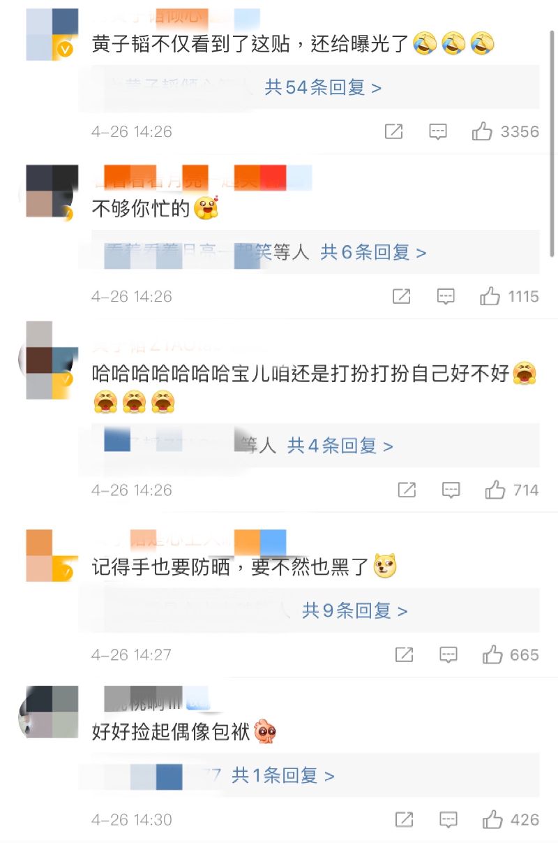 熱評都在笑這位網友,居然被黃子韜發現了!但也有不少粉絲忙著喊話黃子韜打扮打扮自己,撿起偶像包袱!