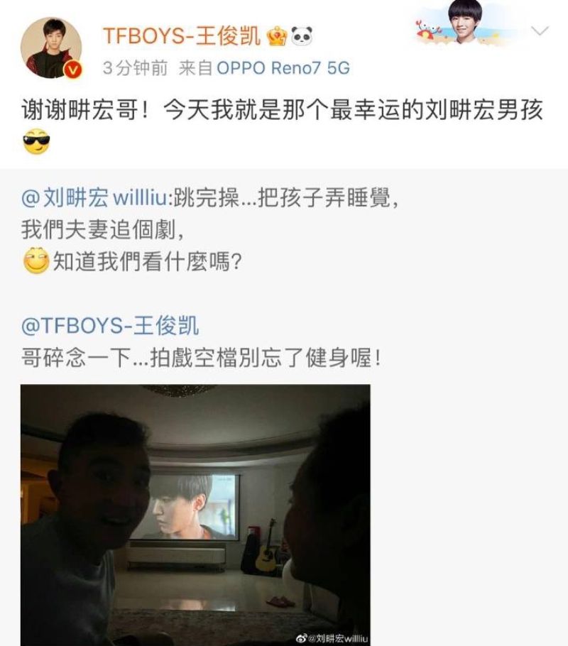 沒想到在7號的直播間,劉畊宏和王婉霏居然化身安利小幫手,讓劉畊宏女孩們都去看王俊凱主演的《重生之門》。劉畊宏還直接在直播間喊話,讓已經開始健身的小凱,在工作之餘不要忘記健身,要讓自己的身體更健康,趕快也來做劉畊宏男孩!