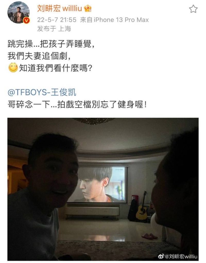 下播之後,劉畊宏還真的立刻和王婉霏一起追劇《重生之門》,接著繼續他的碎碎唸,艾特王俊凱別忘了健身!