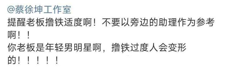 雖然不少粉絲支持蔡徐坤舉鐵,但也有部分網友表示希望他適度舉鐵,不要變太壯!