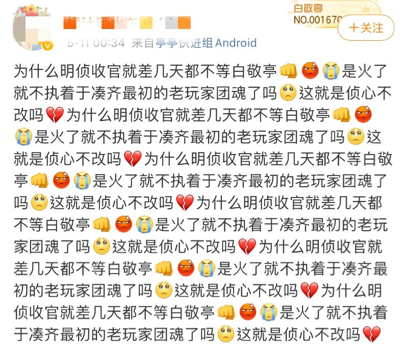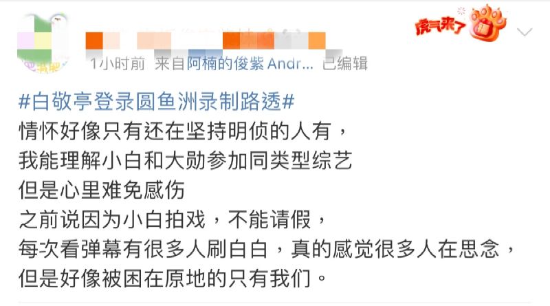 而這次罵戰的起因,是因為白敬亭缺席了新一季明偵,也就是更名為《大偵探》的錄製👇