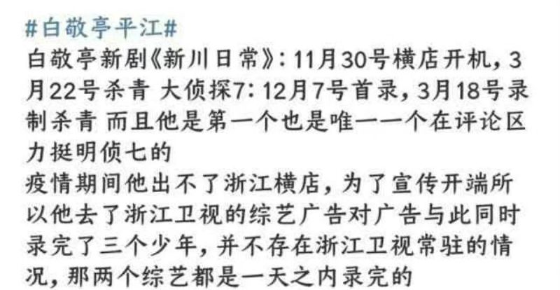 而粉絲也貼出時間線,表示小白之所以沒有參與《大偵探》,真的是因為進組《新川日常》!