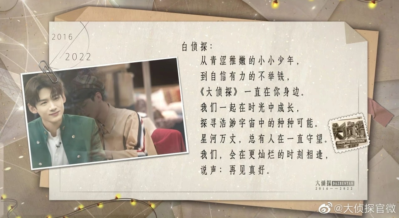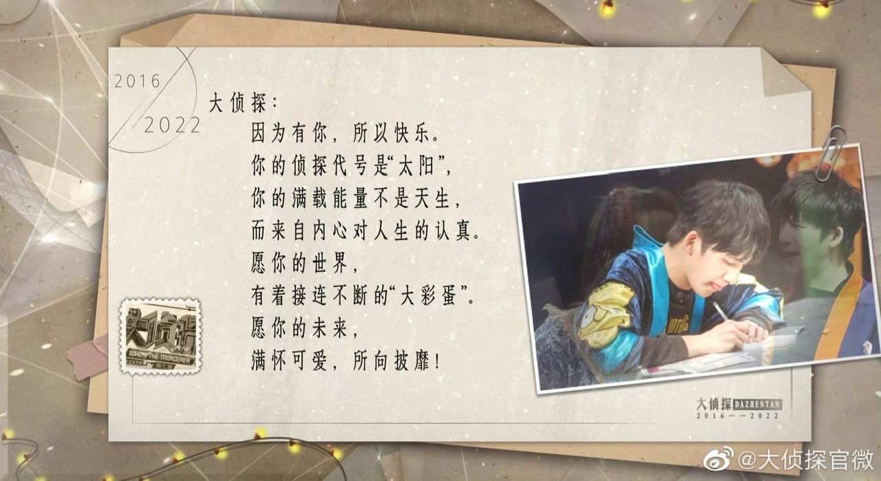 是達,每一個偵探都收到了回信,就連缺席的撒撒和小白也都有,激動的心情誰懂?而熱評第一也很催淚,提到了:「他會回來的,對吧!」結果不少人都在cue撒貝寧和白敬亭,尤其白敬亭近日因為參與了《登錄圓魚洲》之後,讓不少明偵粉擔心他不再回歸👇🏻