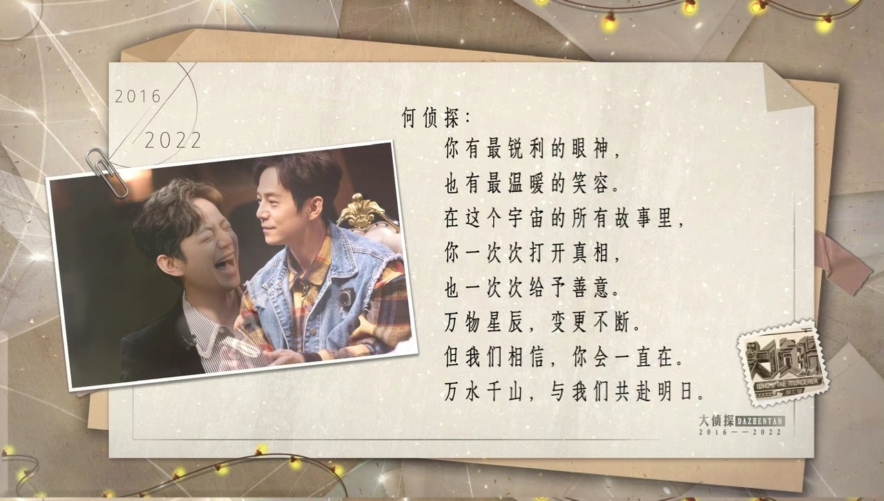 無論如何,這一季在跌跌撞撞的情況下,終於來到收官之夜,而官微也公開了給偵心銀河們的回信。從20160403開始,這片宇宙就在玩家們照料下璀璨著,來看看這封來自《大偵探》給玩家們的回信吧!