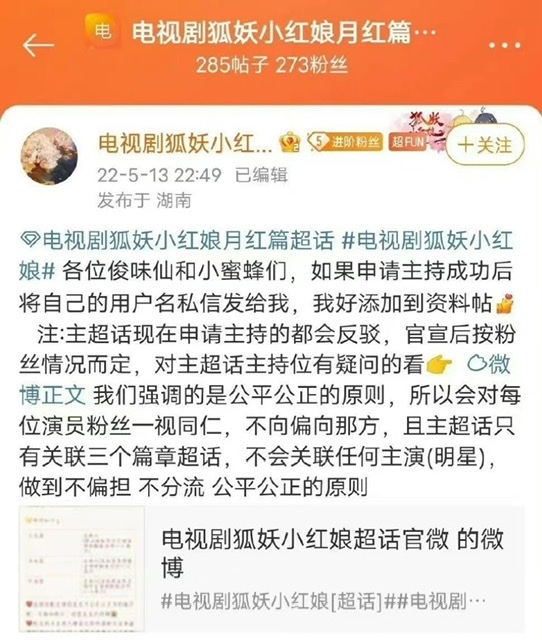 雖然有人質疑這個並非官方微博號,但這個帳號的確是《妖狐小紅娘》官方超話的主持人之一👇🏻