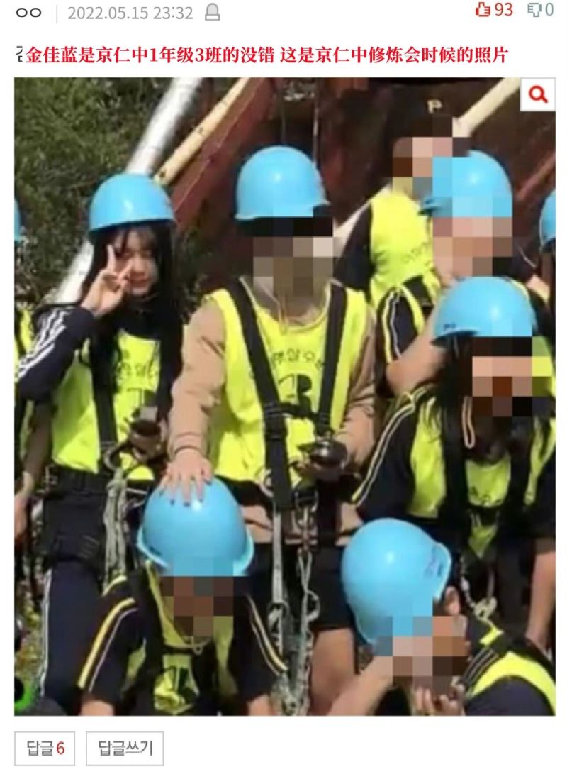 隨後,有網友發出了金佳藍身穿發出該通知書的”京仁中學“的1年3班衣服的”證據👇