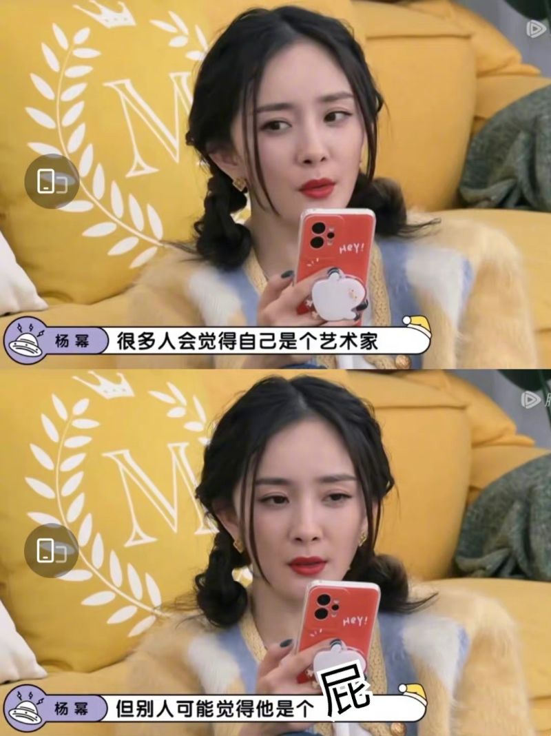 原來是大冪冪在和朋友的語音中,提到了一句話,那就是:「很多人會覺得自己是個藝術家,但別人可能覺得他是個“屁”」雖然節目中將「屁」字消音,但口型也太明顯啦!